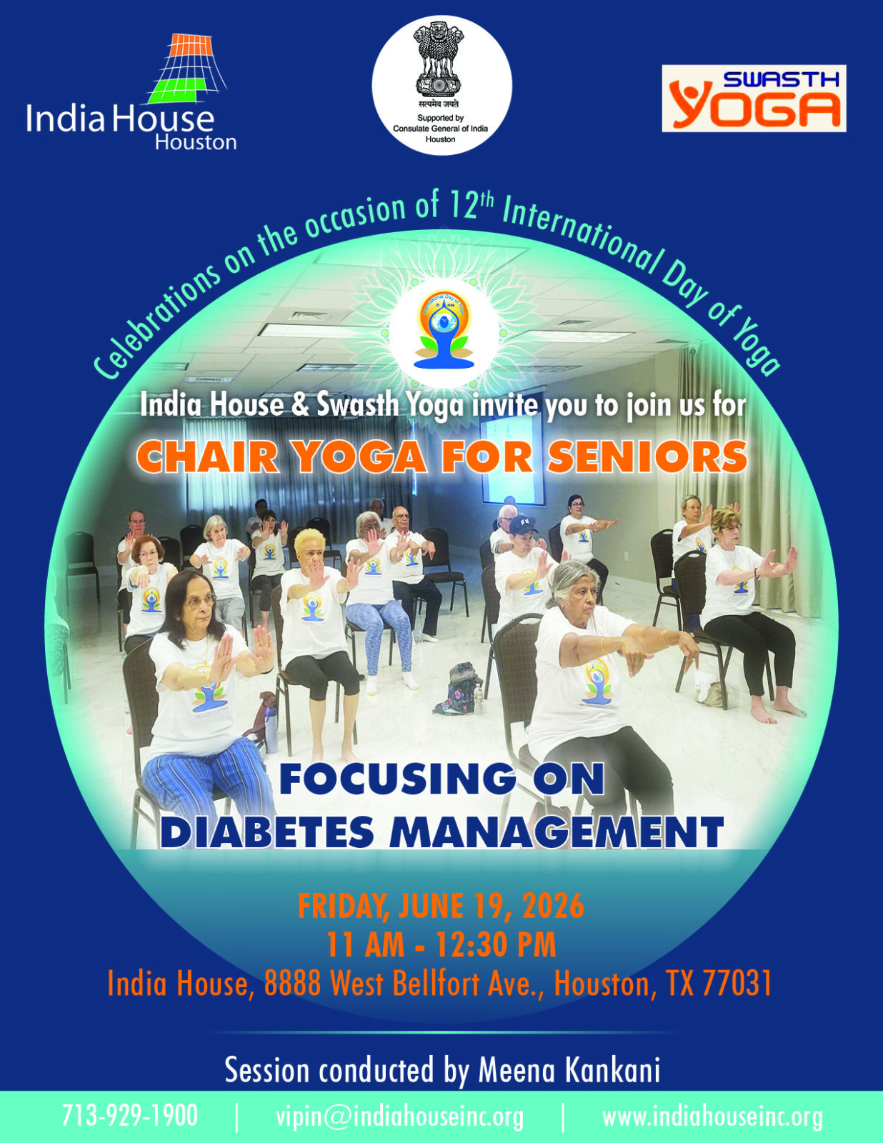 India House Houston has been instrumental in serving the Indian-American community and the broader Houston community since its inception. Besides our cultural and educational initiatives, we also play a significant role in promoting wellness and fitness through our free programs. These programs aim to improve the overall health and well-being of individuals while fostering a sense of community and belonging. Here are free wellness programs and fitness classes offered by us: